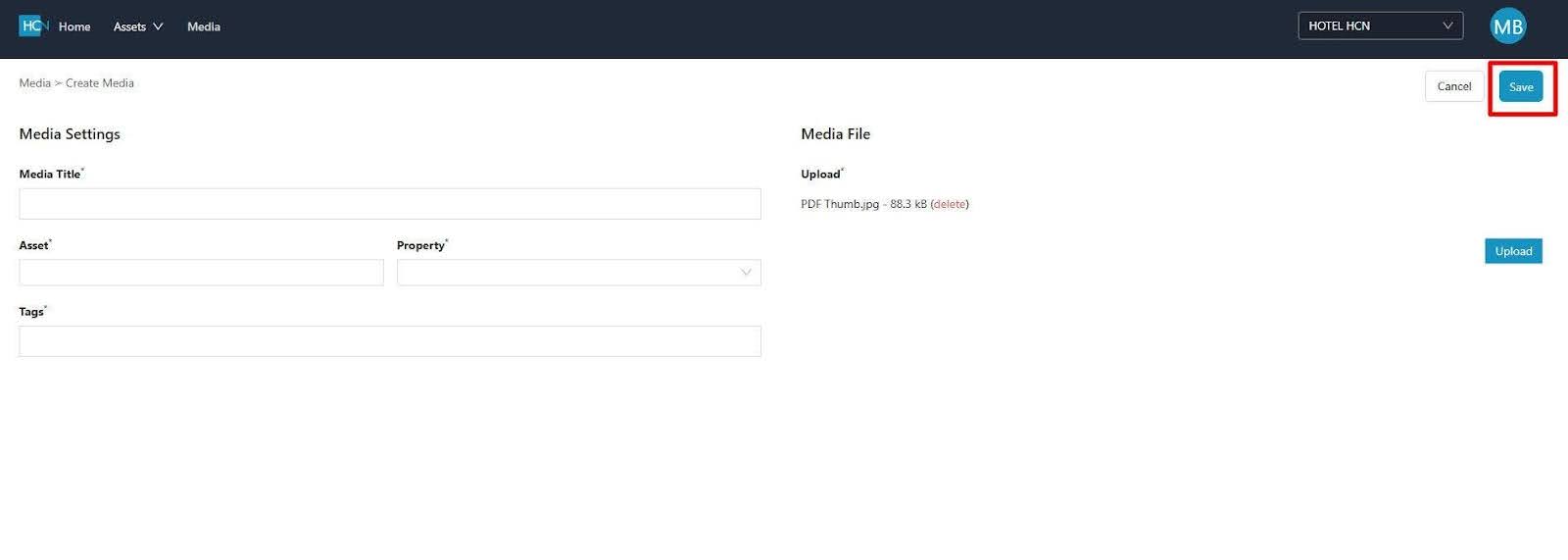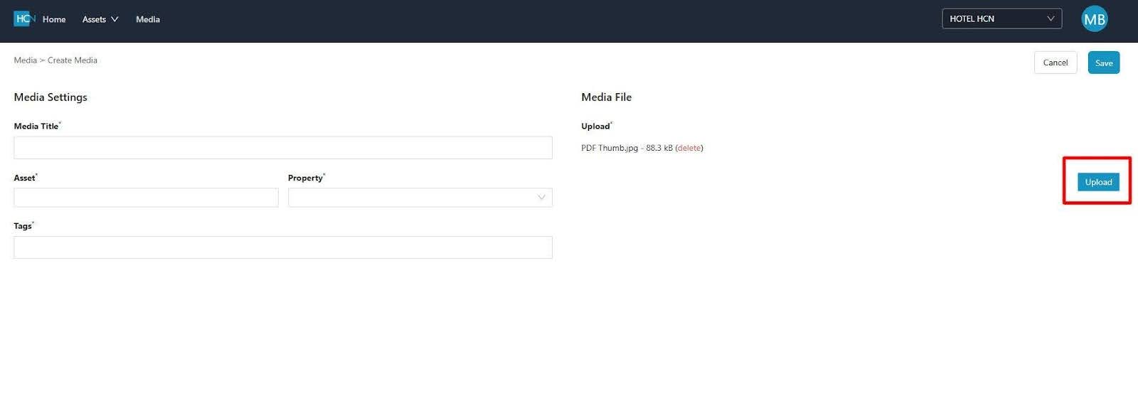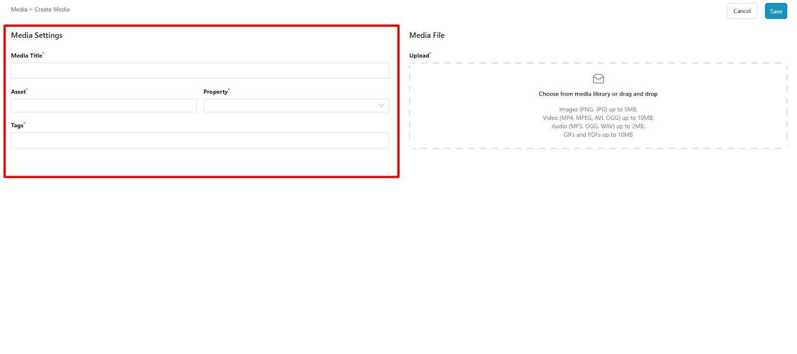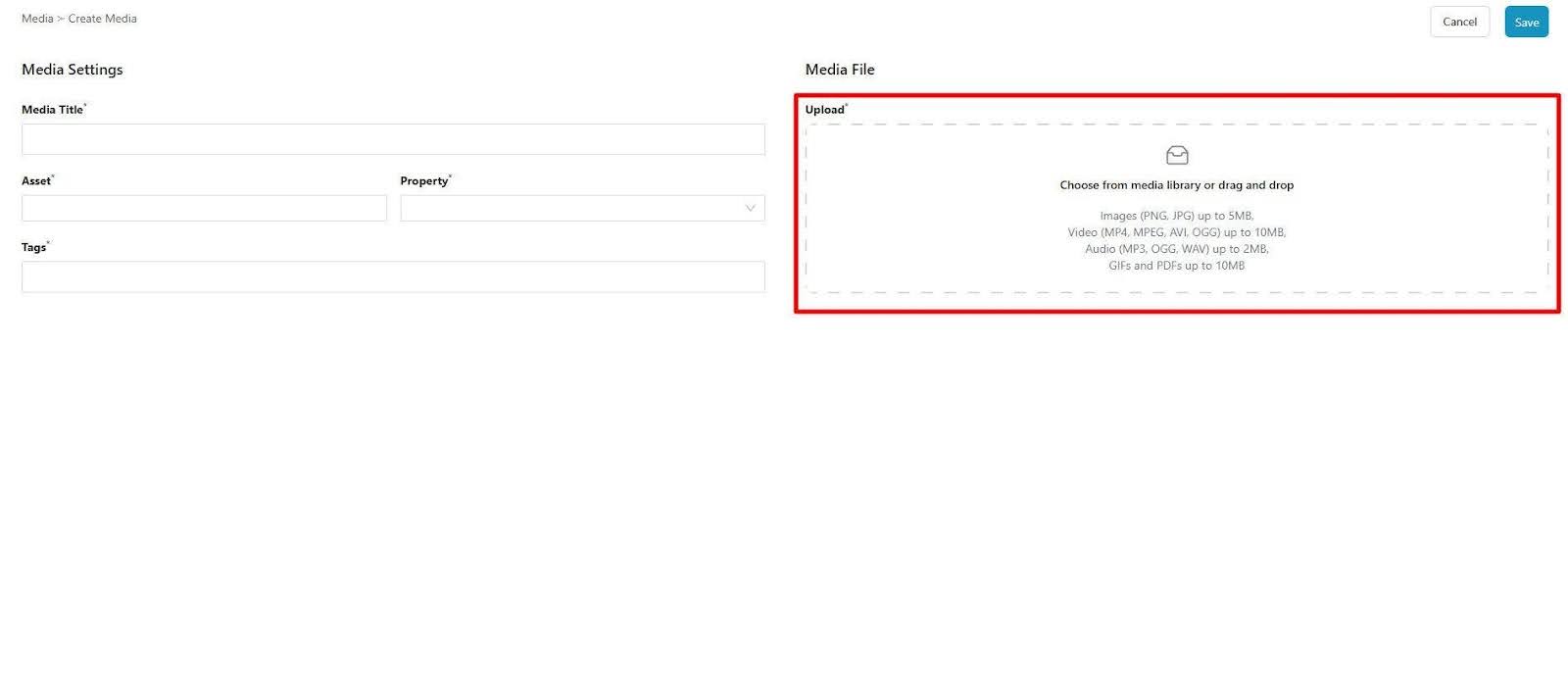 5. Click the Upload media selection window and select your desired file from your source location.