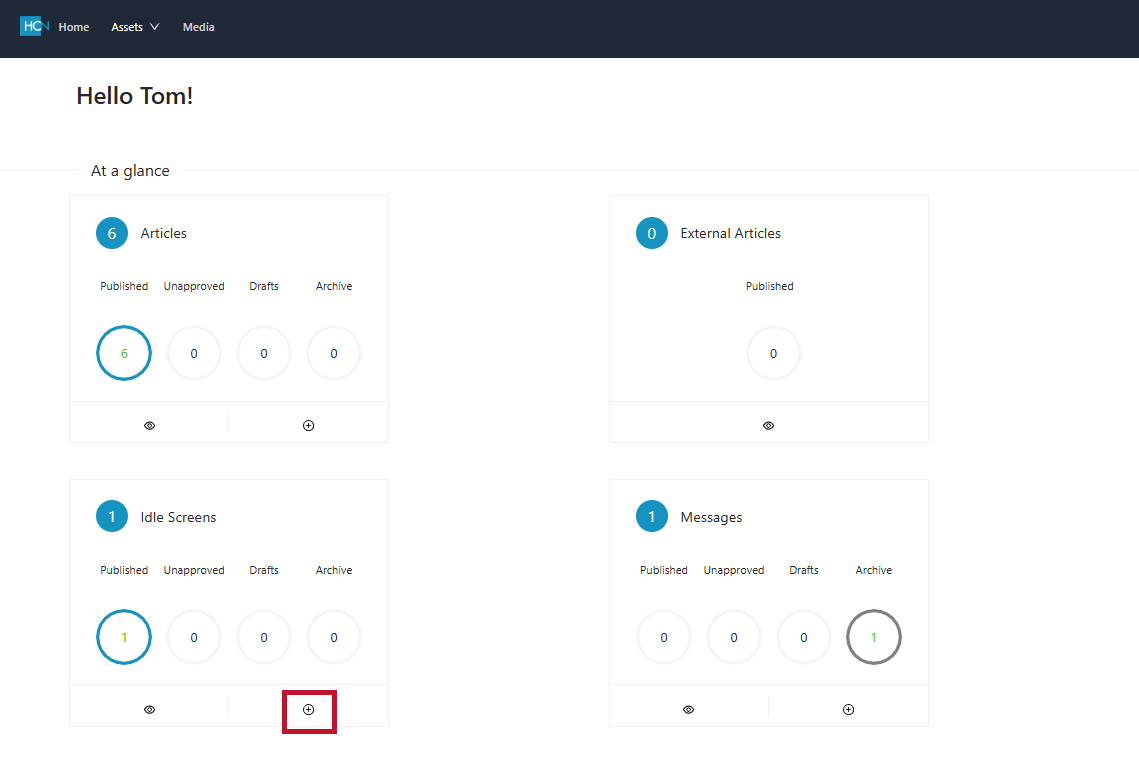2. Press the plus (+) icon on Idle Screens to create a new Idle Screen.