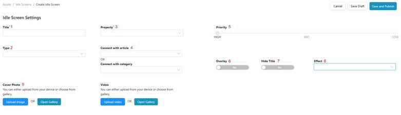 A drop down to specify an article or Category to link the Idle Screen to if any.